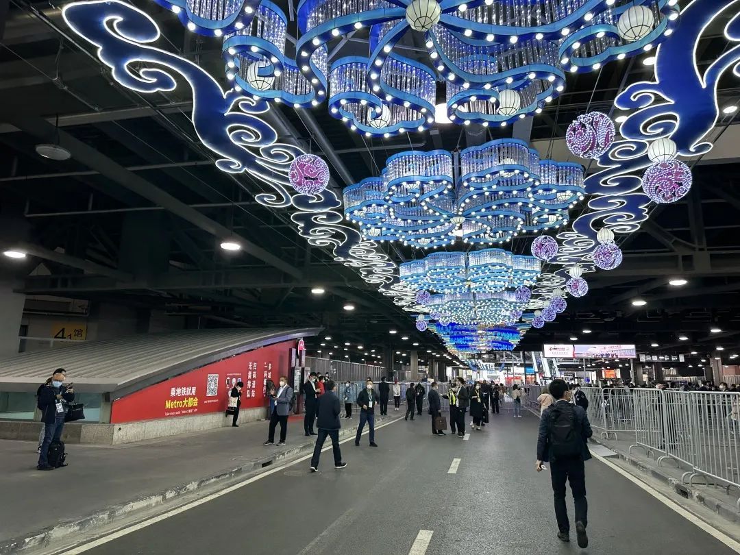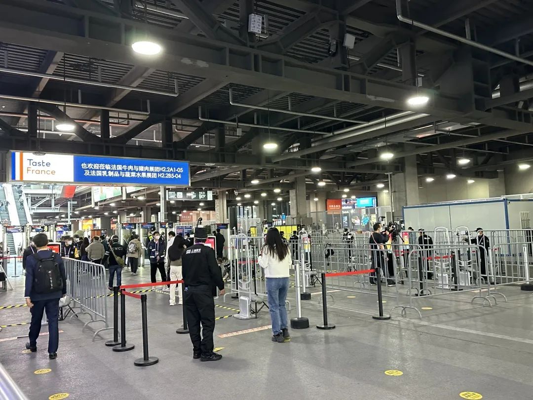 上午10时30分,记者在地铁2号线徐泾东站4号、5号出口看到,参展人员有条不紊的通过国家会展中心的西0米层环形通道通过安检,整个安检全流程十分便捷、迅速。