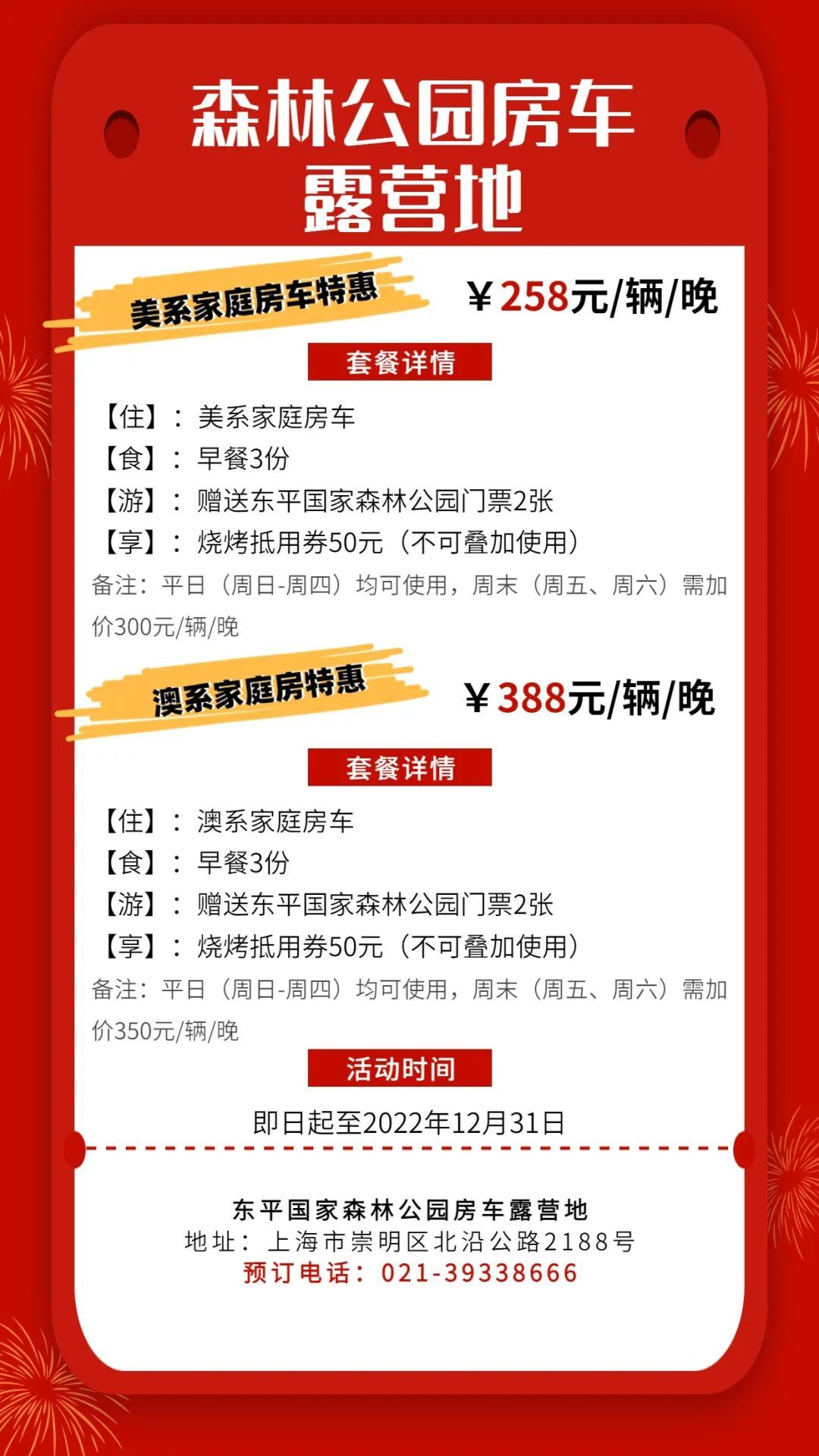 森林公园房车露营地位于东平国家森林公园内,是上海最大的房车露营地,露营区配有完善的配套服务设施:餐厅、茶吧、休闲娱乐区及户外活动区,在这里可以享受大自然的清新和宁静,远离城市喧嚣与烦恼,让身心沉浸在星空、绿树、清波的怀抱。