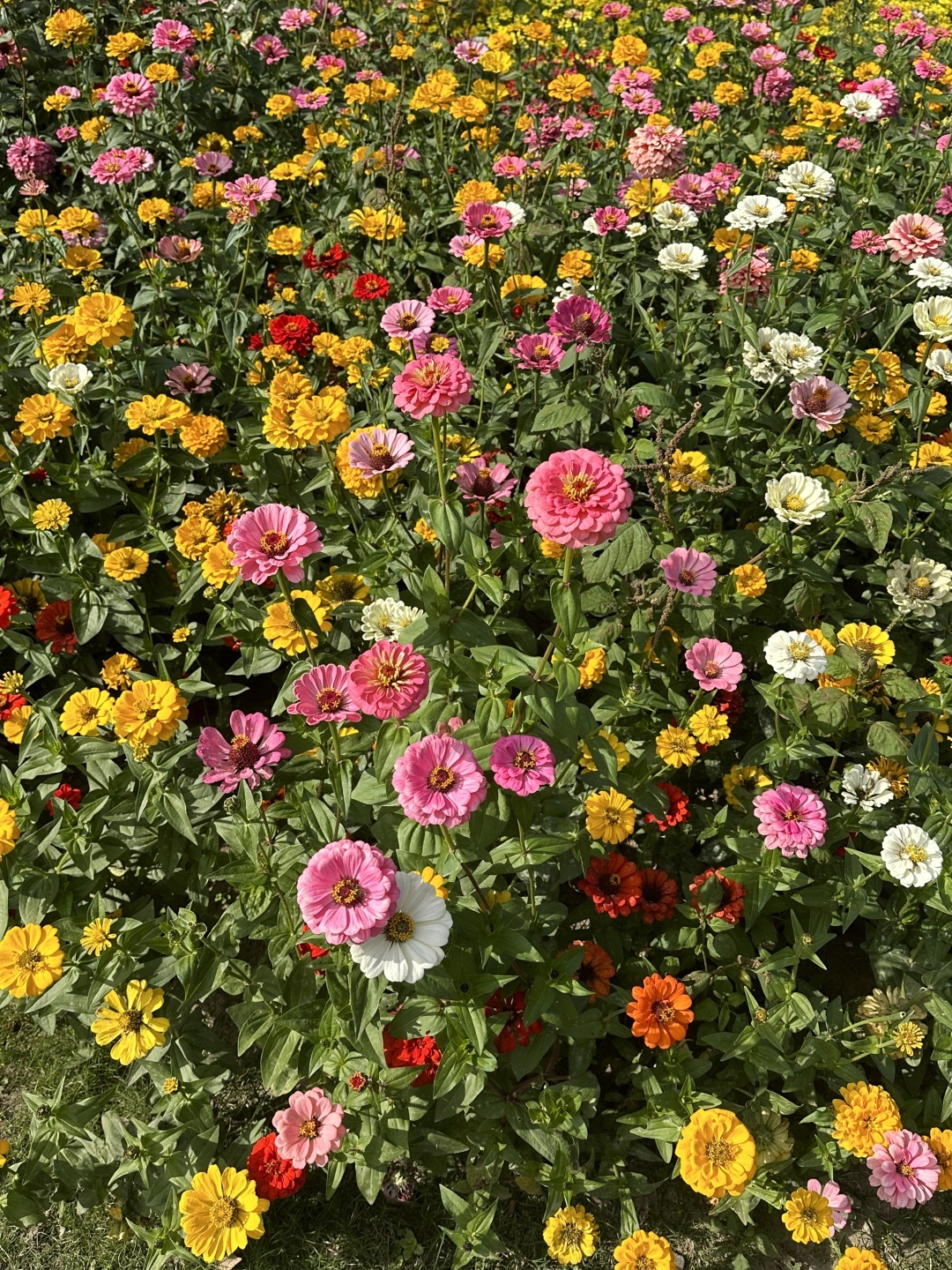 红、黄、粉、白各色菊花组成一片花的海洋,红的高贵、黄的热烈、粉的妩媚、白的纯洁,阡陌相交,艳丽与清雅并存,妩媚与恬静相辅,绘制出了一幅惊艳的诗情画卷。在花丛中,游人如织,纷纷拿起相机记录美景。