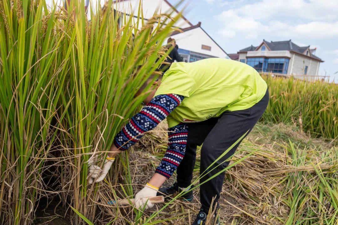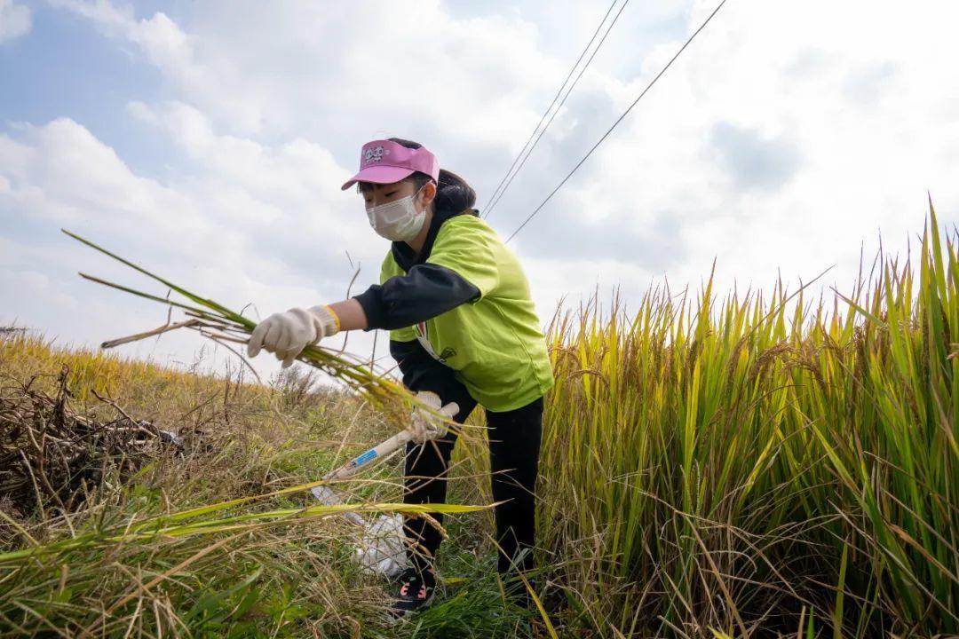 有的小朋友脚边早已堆起了高高的谷堆,甚至还总结出了自己的割稻小经验正向大家分享呢。“我刚才在割稻谷中发现,镰刀要尽量对着稻谷的尾端,锋利的刀刃面向着稻谷,这样就能更迅速地割到更多的稻谷。”青溪中学的谢乐怡在现场当起了小老师。