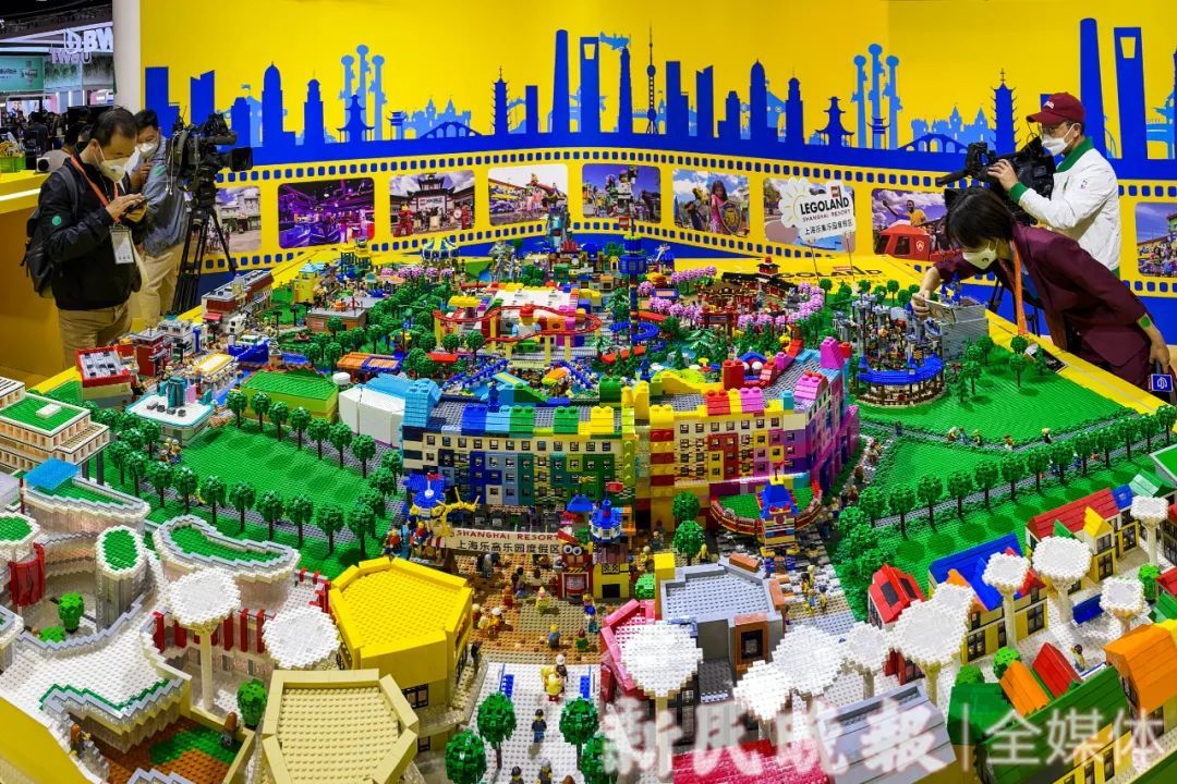 近10万颗乐高积木搭建而成的上海乐高乐园度假区概念设计模型,正式亮相第五届进博会。新民晚报记者 陈梦泽 摄