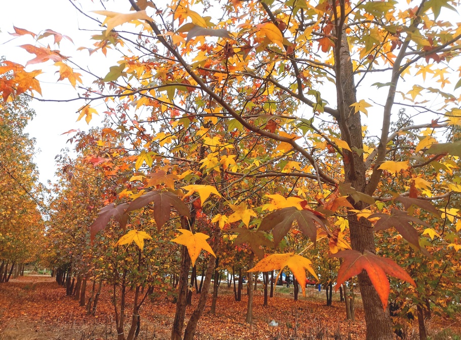 据了解,枫叶岛占地300亩,分别种着北美红枫、北美枫香和红叶石楠,共计8000余株。由于对温度、阳光、湿度等外界因素比较敏感,因此每一株枫树叶子的变色进度都不一样,形成了多色交错、一树挂五彩的别样景致。目前,率先染上“秋色”的是北美红枫,到11月中下旬,其他品种枫叶也将相继登场,预计最佳赏枫时间,将持续一个月左右。