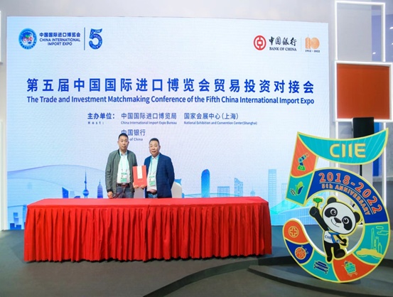 进博会期间,借助中国银行展台,新九星公司分别与上海德万家企业发展(集团)有限公司、上海阔江实业有限公司进行了意向签约。