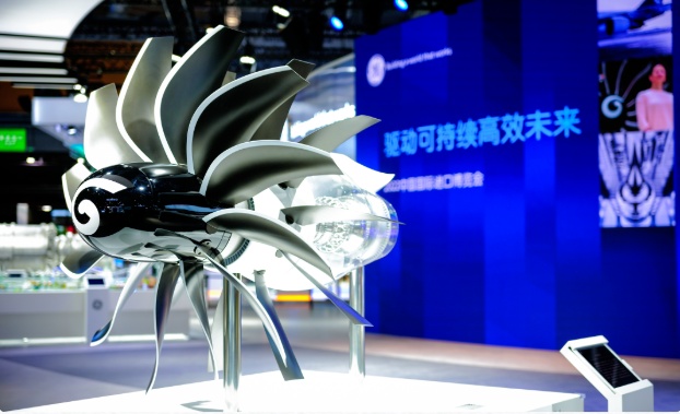 在第五届中国国际进口博览会(以下简称“进博会”)4.1展区B3-03展台的通用电气航空(中国)有限公司(以下简称“GE航空”)现场,未来航空的前沿技术惊艳亮相。