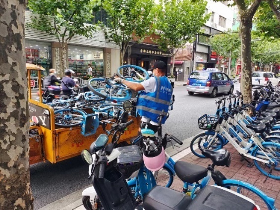 曹家渡街道因地制宜,针对薄弱区域、重点路段的市容环境面貌开展重点整治。在延平路的新闸路至武定路路段,沿街商业氛围浓郁,人流密集、人行道狭窄、共享单车等非机动车乱停放问题突出,对居民正常出行造成了不便。