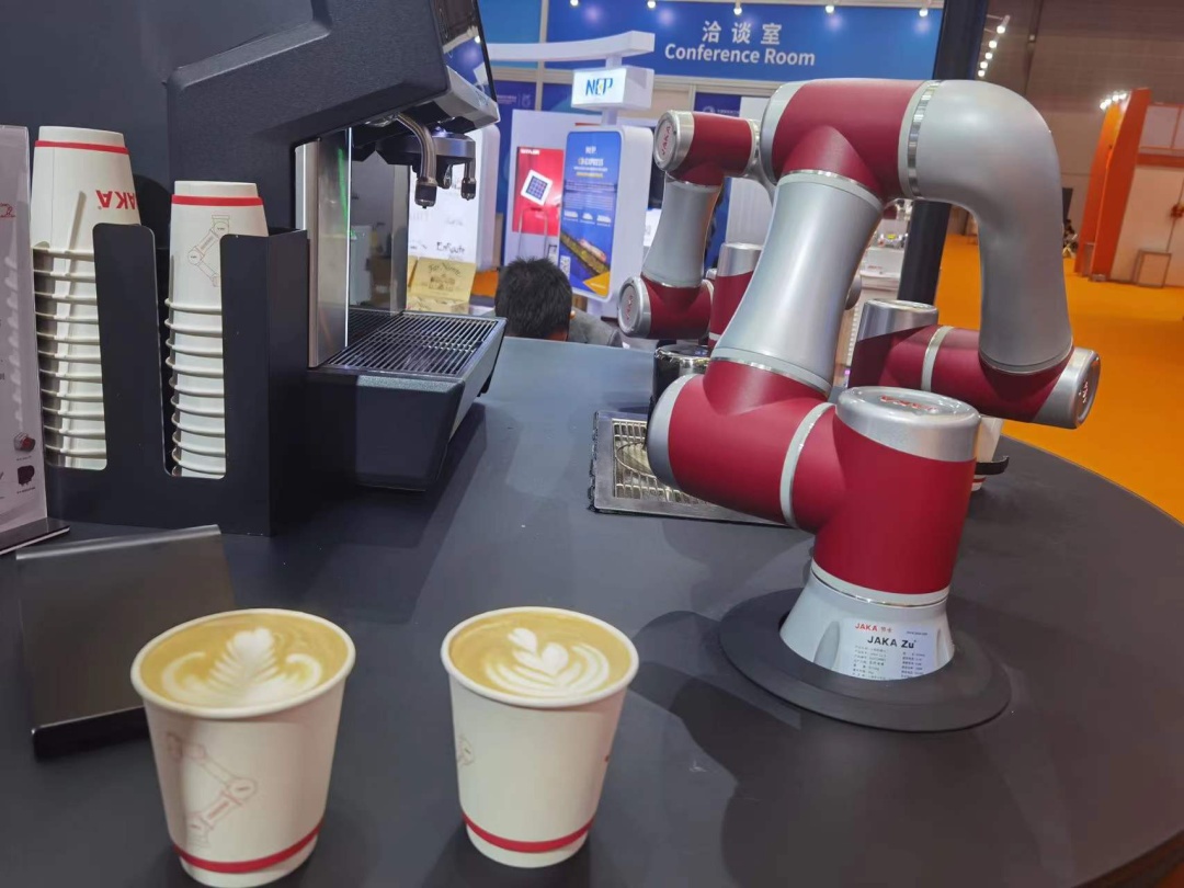 节卡机器人首次亮相进博会,带来面向工业及新商业等领域的创新产品及应用,与各大制造业品牌同台交流,并向来自世界各地的客户展示JAKA品牌。在节卡机器人展台,节卡复合机器人、节卡智能咖啡机应用、节卡PCB装配应用吸引了众多参展客户的目光。