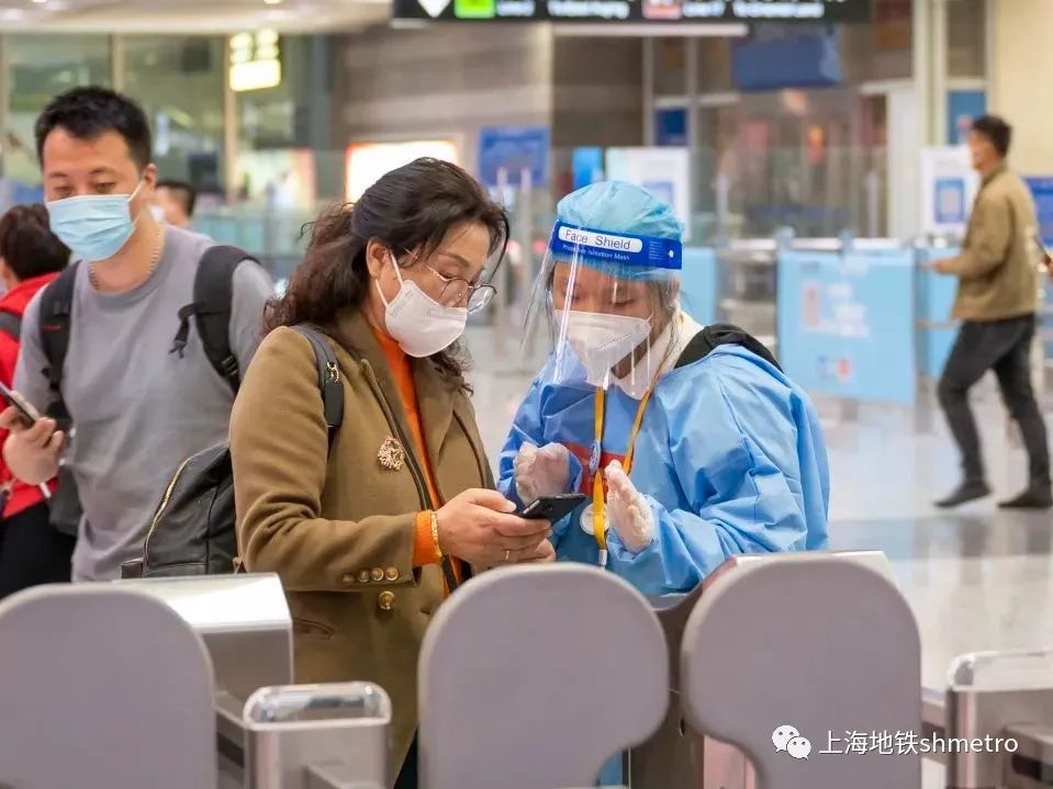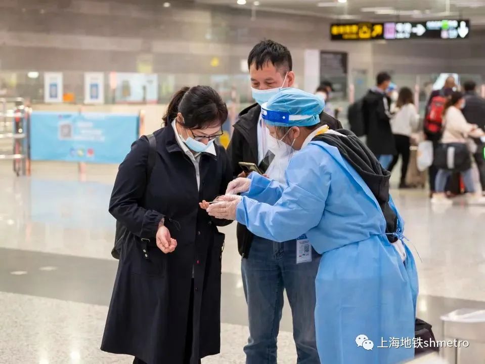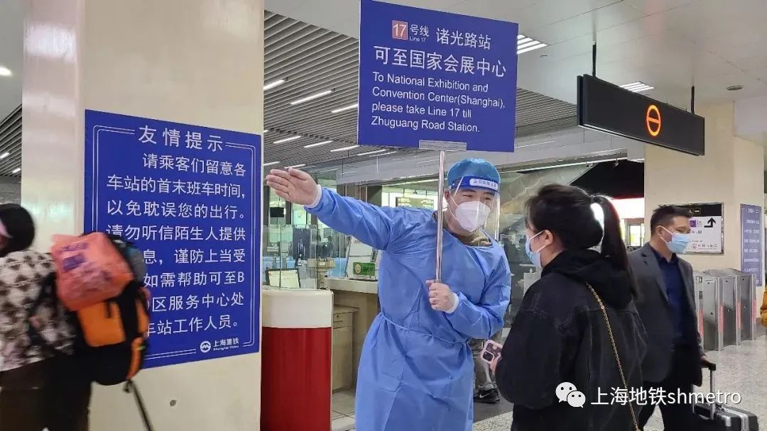 线路增援志愿者的到来让车站的引导工作如虎添翼,他们在站厅内持双语手持牌,为进博的参展商指明换乘路线,同时提醒进站乘客戴好口罩,做好自身的防疫工作,为车站营造一个安全、舒适的乘车环境。
