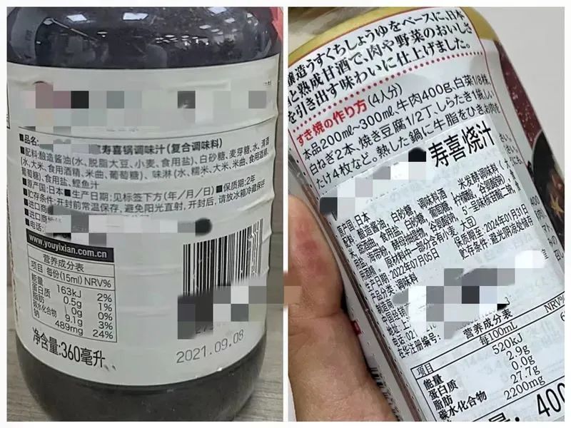 同样是日本进口的寿喜汁酱油,有的(左款)“无添加”,有的(右款)“有添加”