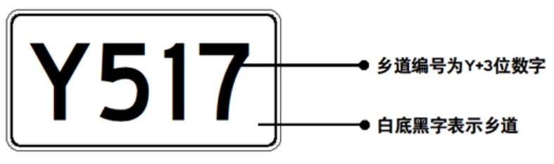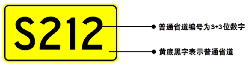 普通公路(普通国道、普通省道、县乡村道和专用公路)路线编号,由一位公路行政等级字母标识符“G(S/X/Y/C/Z)”和三位数字编号“×××”组配表示。