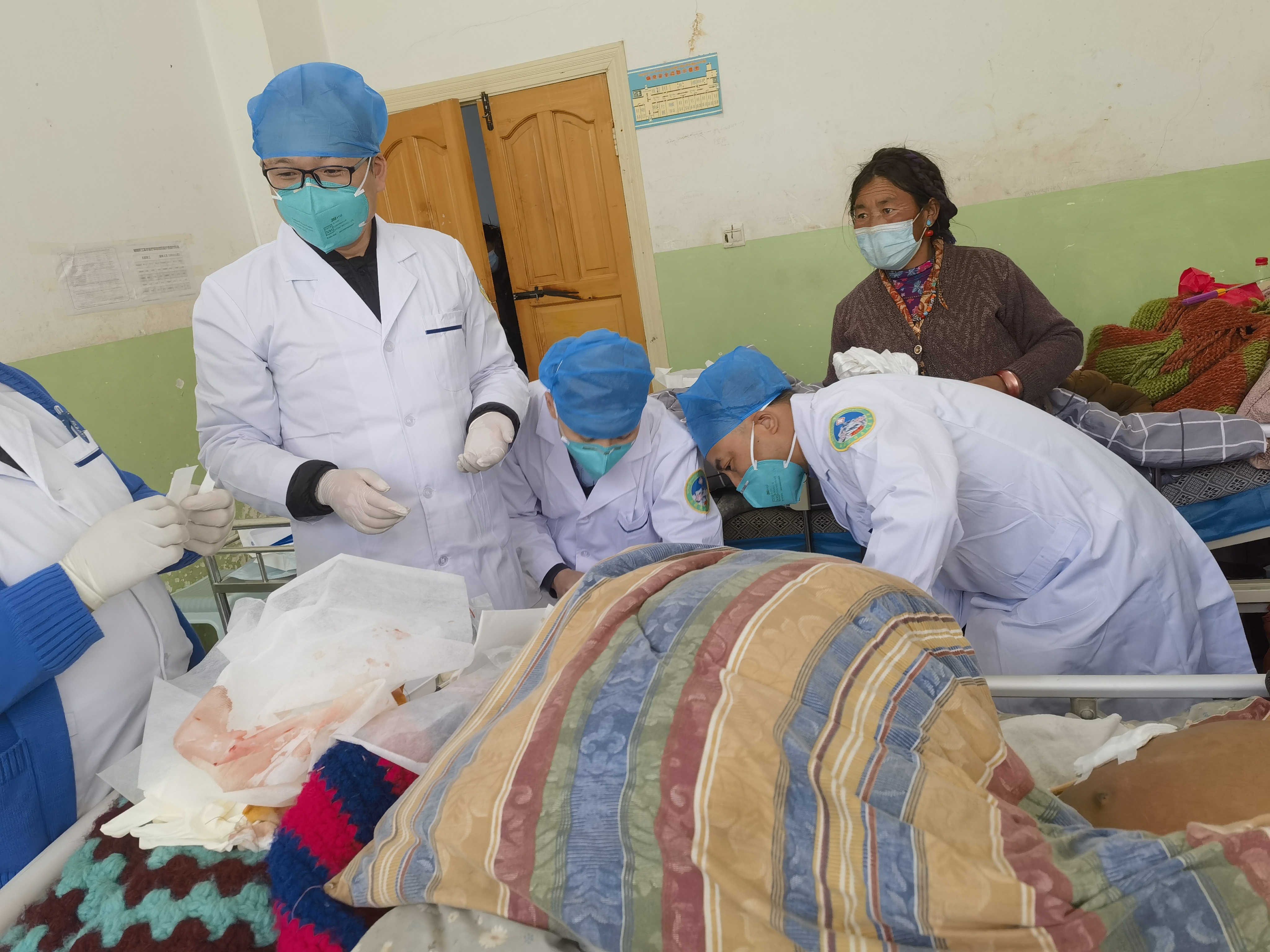 备齐手术器材和物料的当天下午,医疗队王雷钧、王力波、辛磊几名医生相互配合,在当地藏族医护人员的全力协助下,顺利完成腹腔留置管操作。随着腹水缓缓引出,患者腹胀症状明显缓解,也不必再忍受反复腹腔穿刺的痛苦了。术后,这名藏族患者连连为松江援藏医疗队精湛的技术和心系患者的态度点赞。