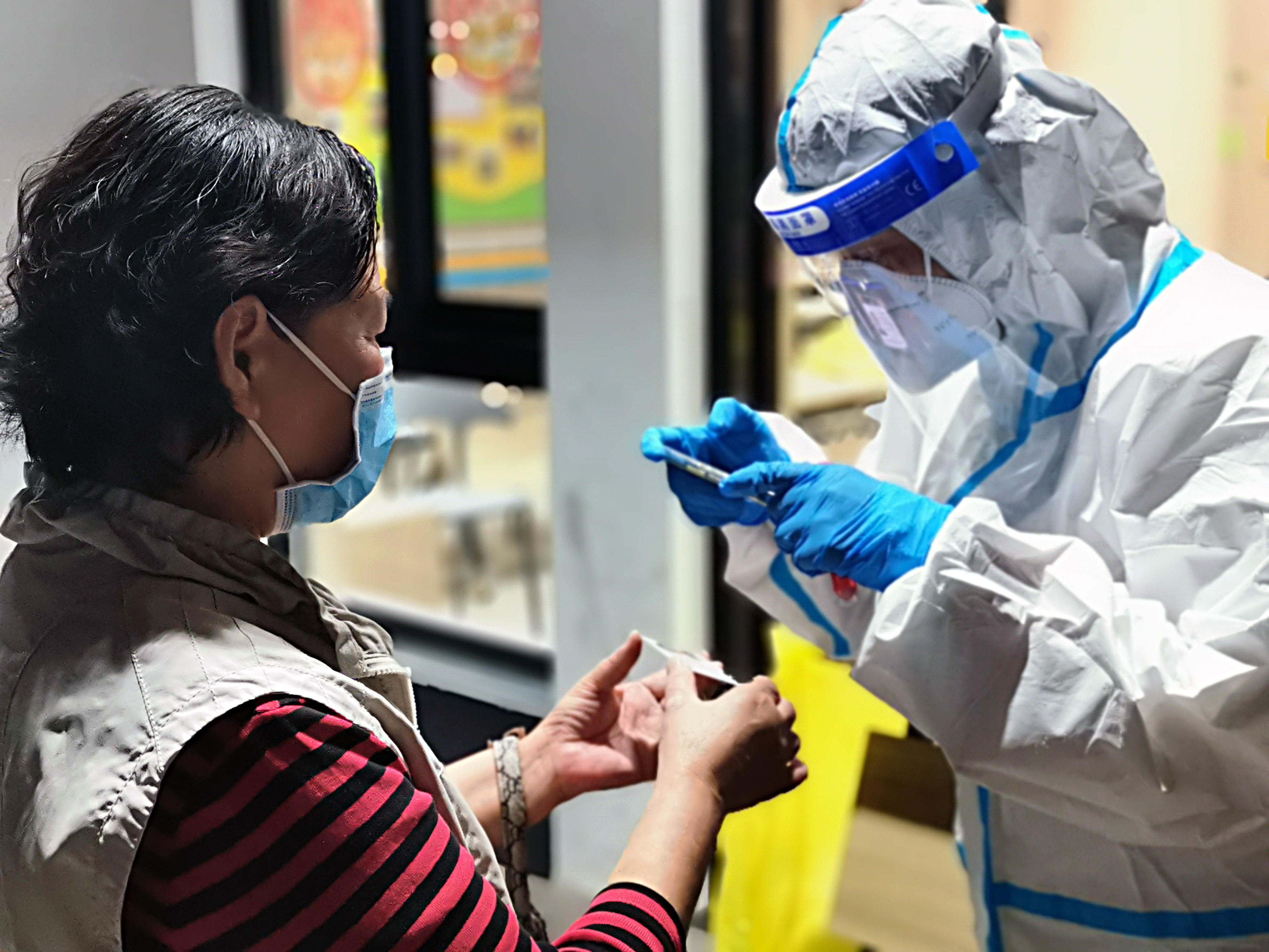 “我现在穿‘大白’防护服已经相当熟练了。”穿过透明面罩,不难看到来自区检察院检务保障部的王琦的脸上已经挂着汗珠,“问题在于一天的大筛结束后,要脱下防护服有一套特定的消杀流程,而满身的汗水则让整个过程难上加难。”今年四月开始,王琦便在打浦桥街道担任防疫志愿者工作,一干就是3个月。彼时的气温对比眼下秋日的凉爽,让王琦有些“难以忘怀”——夏季的高温加连日的降雨,让防护服成了移动的“蒸笼”,对志愿者们来说无疑是一场“烤”验。可是王琦从来不叫苦、不叫累,始终以党员的信念坚守在岗位上。打浦桥街道的许多个社区都有过她前去支援抗疫的身影。