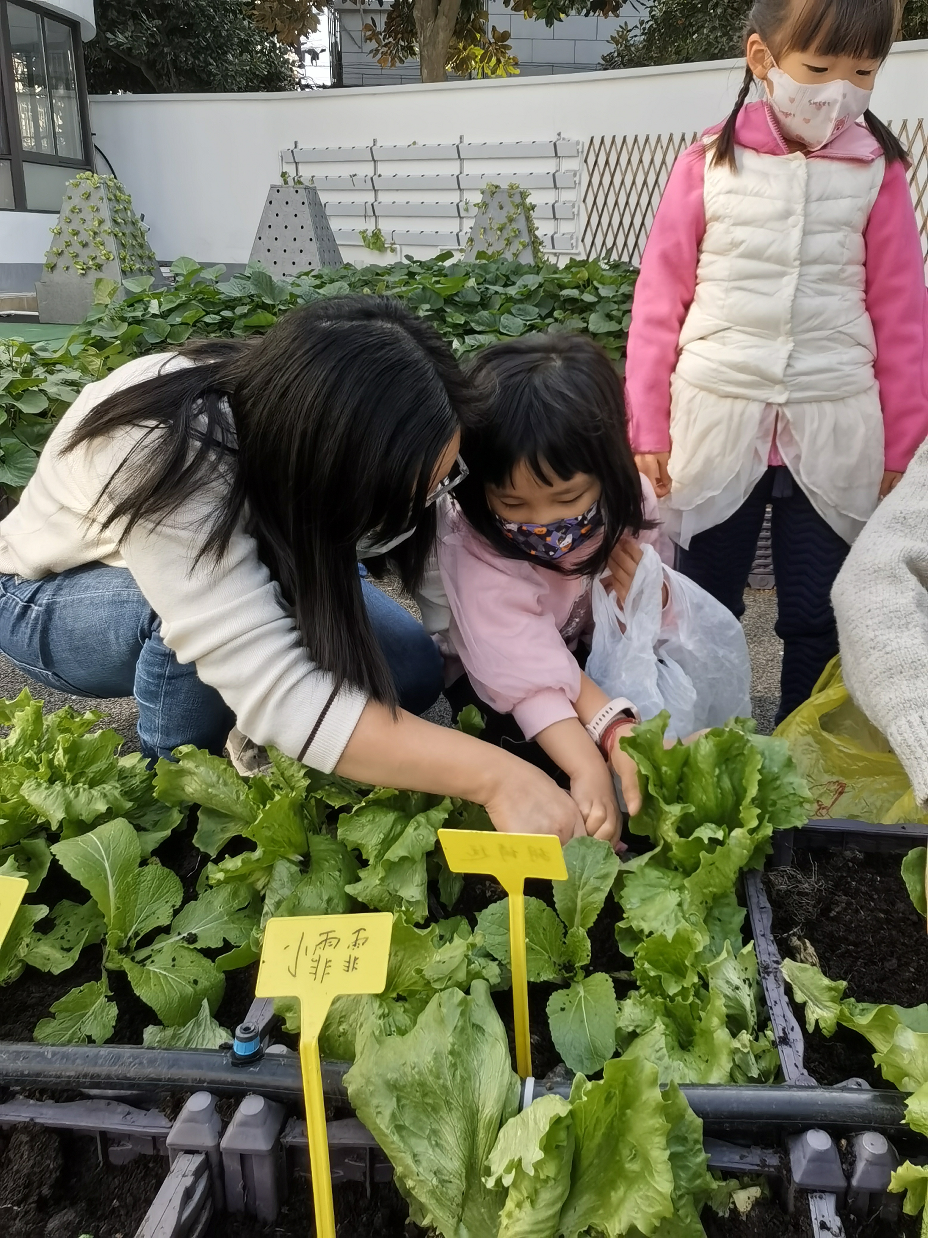 “一颗、两颗、三颗……”蹲在写着自己名字的“小菜田”前,今年6岁的俊俊高兴地数着今天可以收获几颗生菜,有些小骄傲地说,“这些都是我和爸爸一起种的,现在又一起来收获,我太开心了。”
