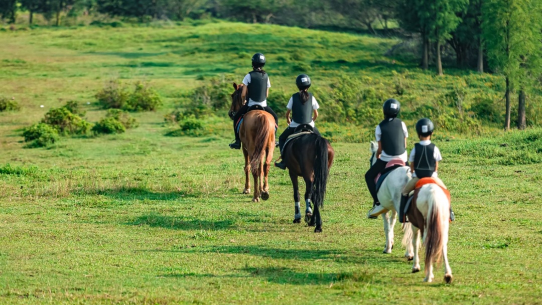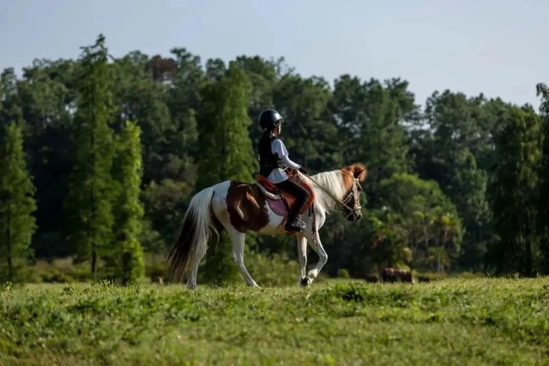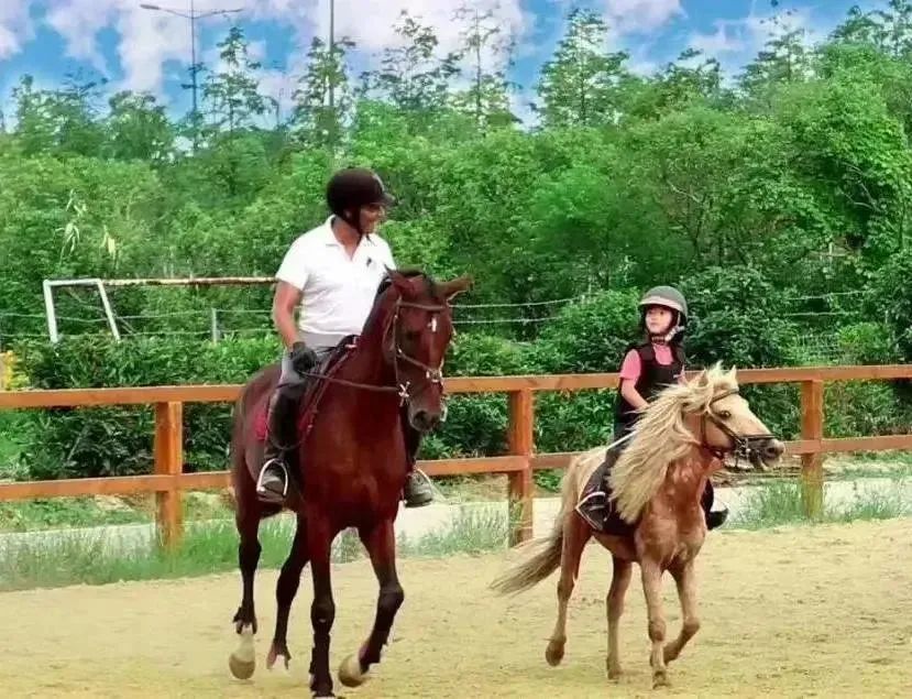 身着专业的马术装备,在教练的一对一引领下,从学习上马下马,到慢步、快步,骑着小马在农场漫步,享受田园风光。