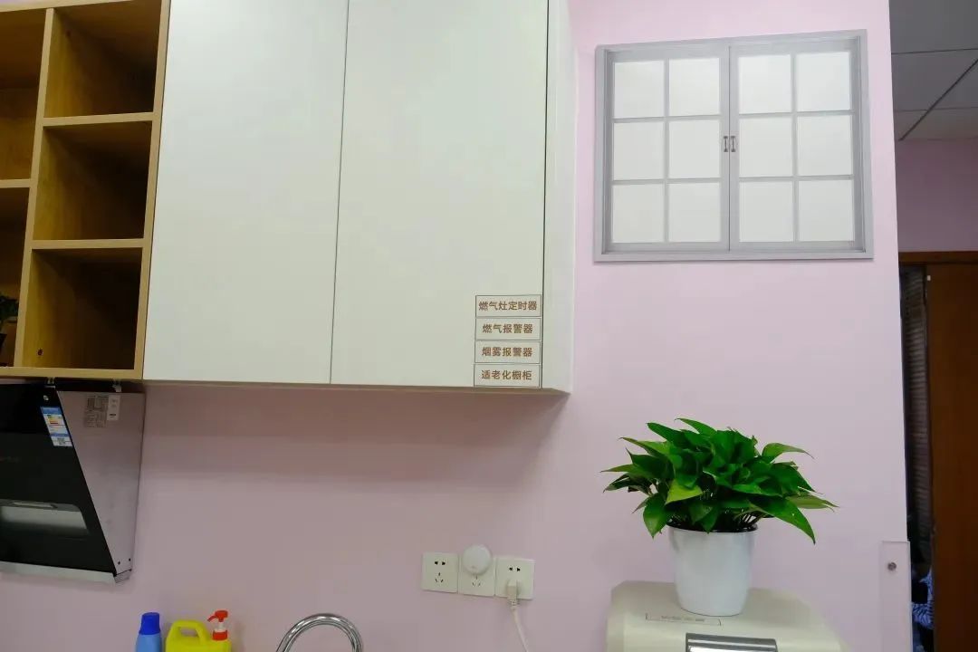 在厨房里设置了燃气报警器、烟雾报警器,当老年人烹饪完毕后忘记关闭燃气,会及时发出警告并自动打开窗户。