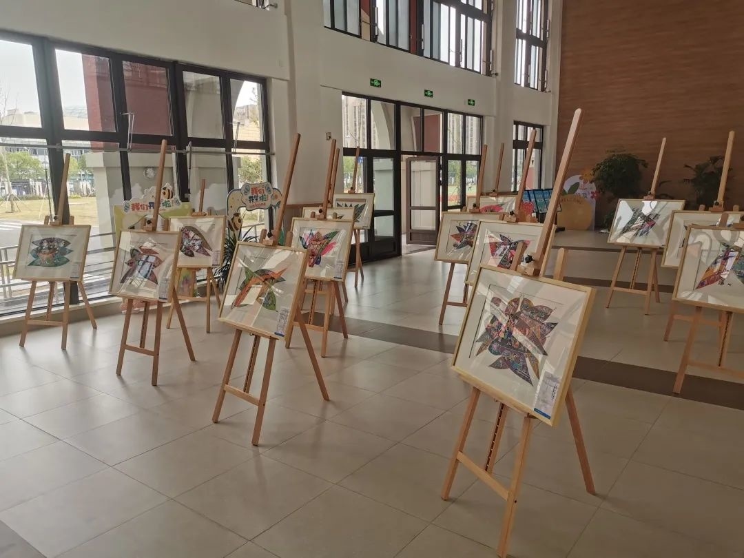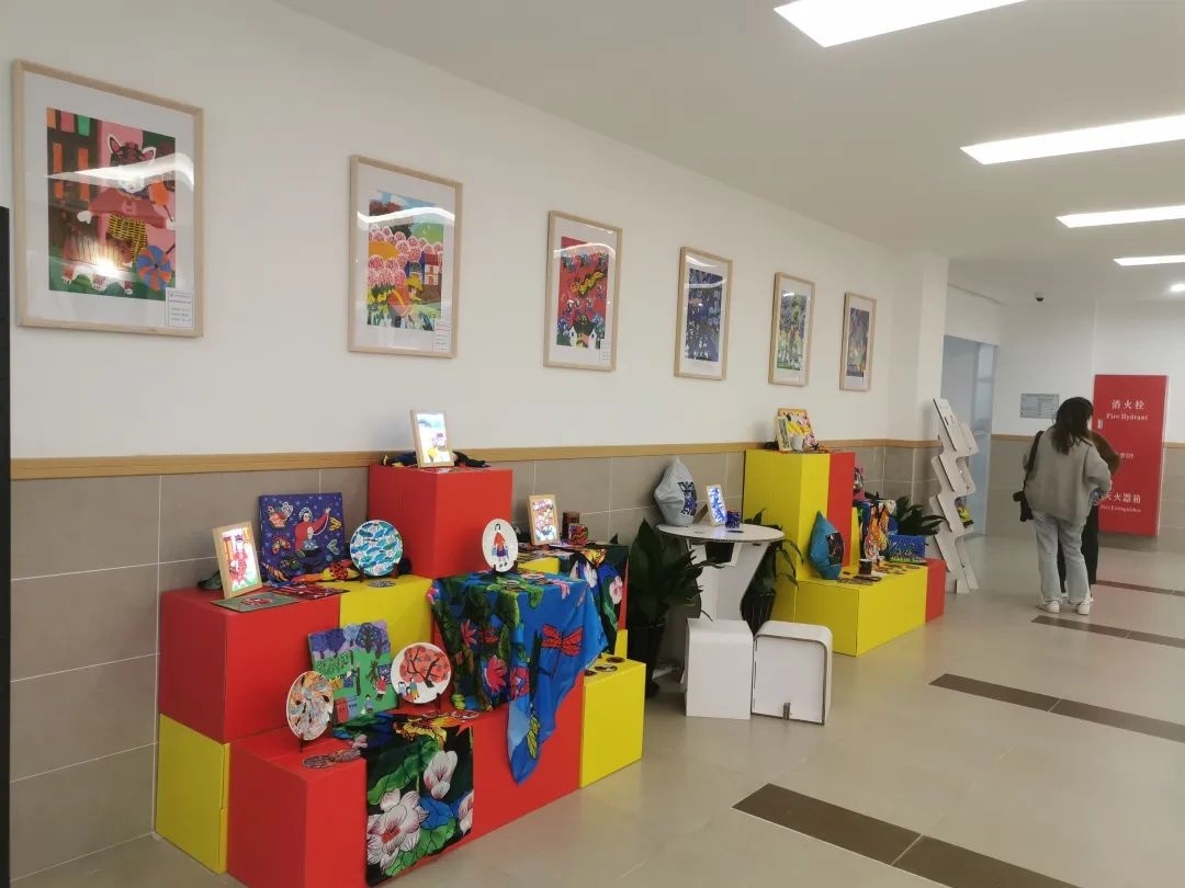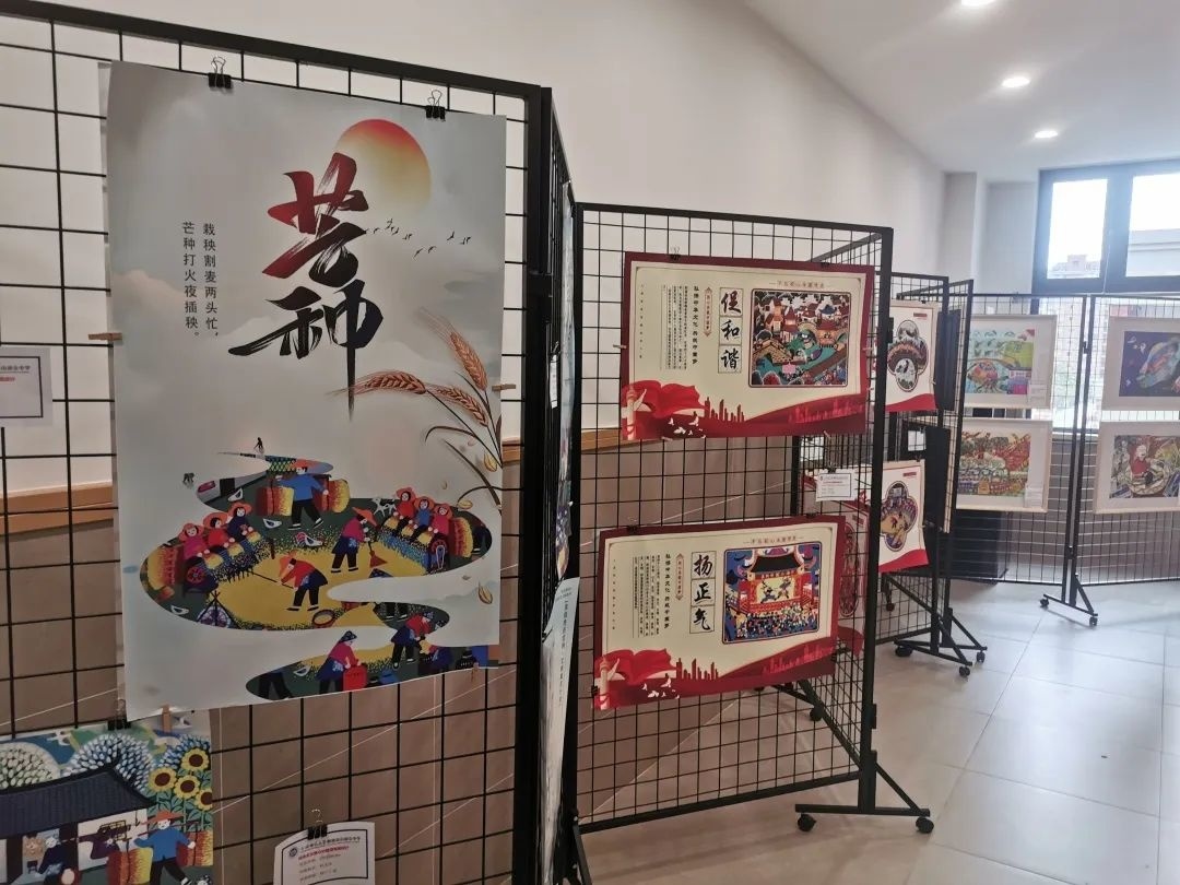 除了课堂教学之外,学校还开设了金山农民画展。现场展出的《二十四节气图》将金山农民画与金山本土特色景点、民俗相融合,让学生们进一步了解传统文化背后的意义。此外,现场还展出了不少学生作品。