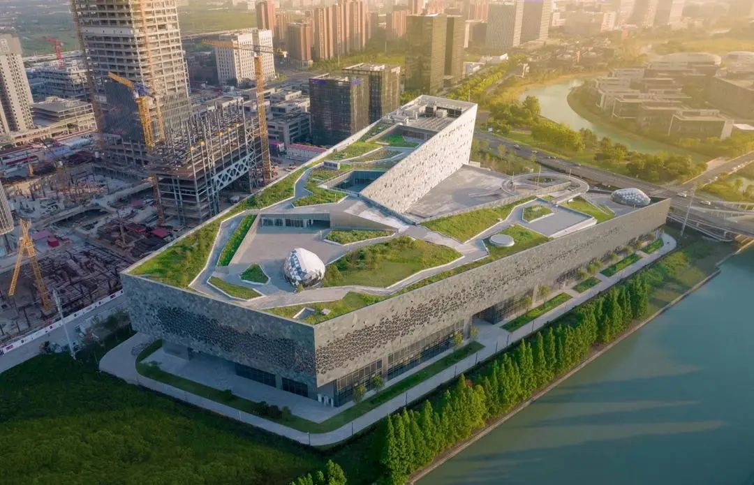 张江科学会堂地处张江科创CBD入口,隔河北望“张江药谷”,南近城市副中心建筑群,西邻张江人工智能岛,东接在建的“张江科学之门”,由普利兹克奖得主、法国建筑师包赞巴克所在的2Portzamparc事务所设计。