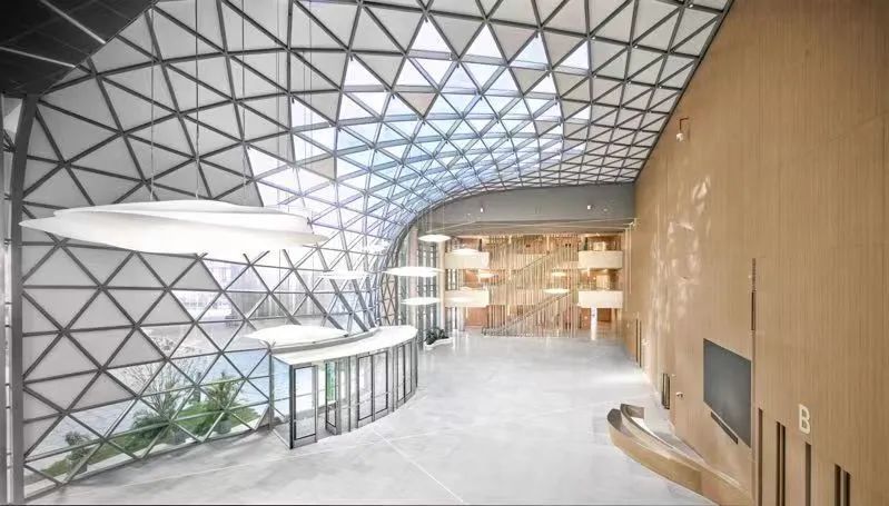 从清晨到黄昏,张江科学会堂幕墙也会呈现着不一样的美。这得益于兼顾结构受力和视觉审美的定制钢系统,它既是幕墙龙骨,又是“颜值担当”。正是创新和匠心,织就了张江科学会堂的这件“外衣”。