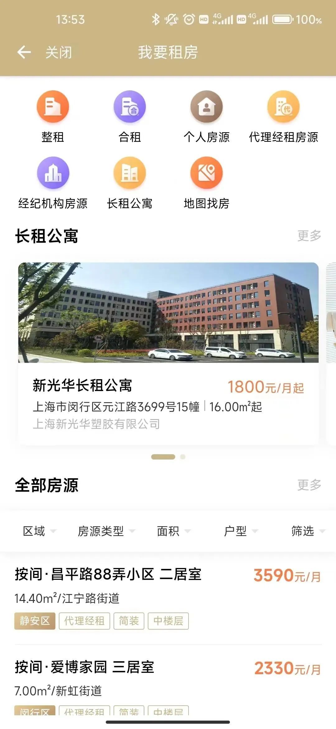3、个人可根据实际需求按行政区、房源类型、面积段和户型筛选。