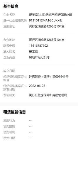 住房租赁企业是从事代理经租或长租公寓经营的公司,房地产经纪机构则是做房屋租赁或买卖的中介,选择企业类别,输入企业名称,点击【查询】,可以查看公司的信息。
