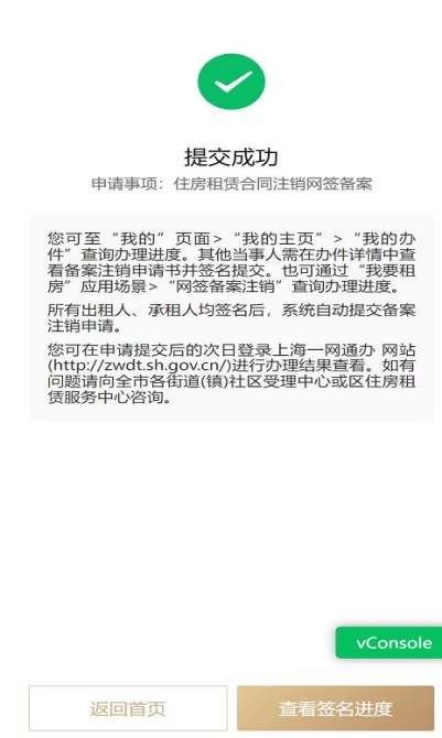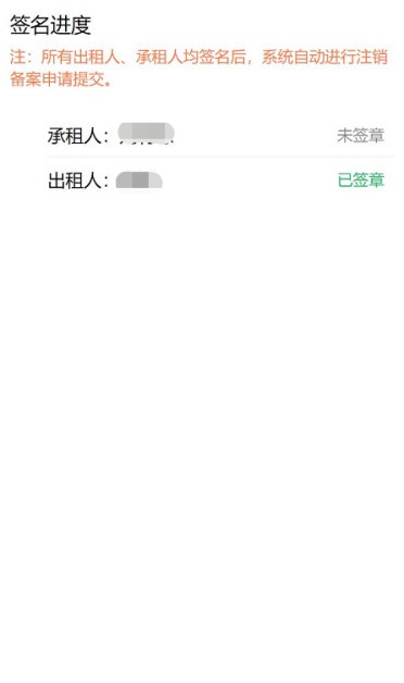 出租单位、承租人签名后,系统将自动进行租赁合同备案。