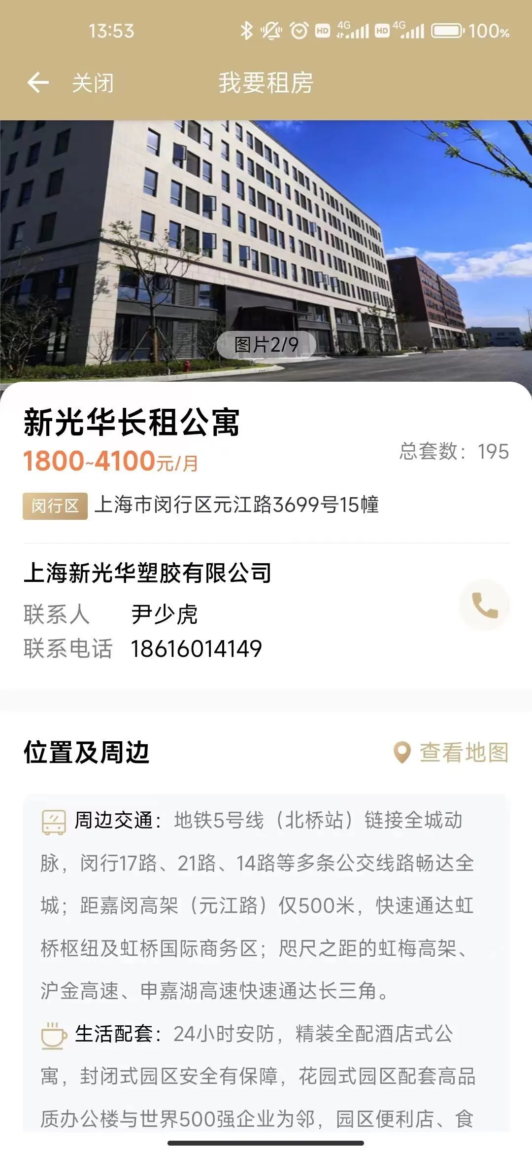 可查看房源详情。比如长租公寓,选择房源进入后,可查看位置及周边、户型等信息。