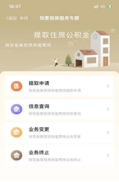 该服务提供提取申请、信息查询、业务变更、业务终止四项功能。