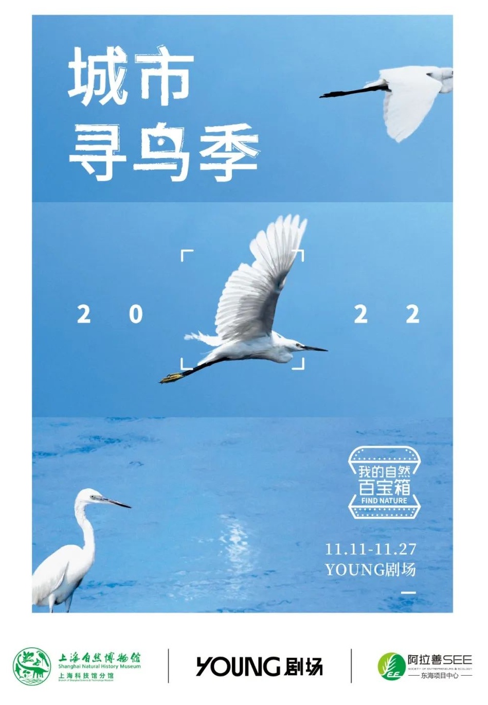 11月11日至27日,由上海自然博物馆(上海科技馆分馆)原创的主题展示活动“城市寻鸟季——2022‘我的自然百宝箱’主题展”在YOUNG剧场举办。
