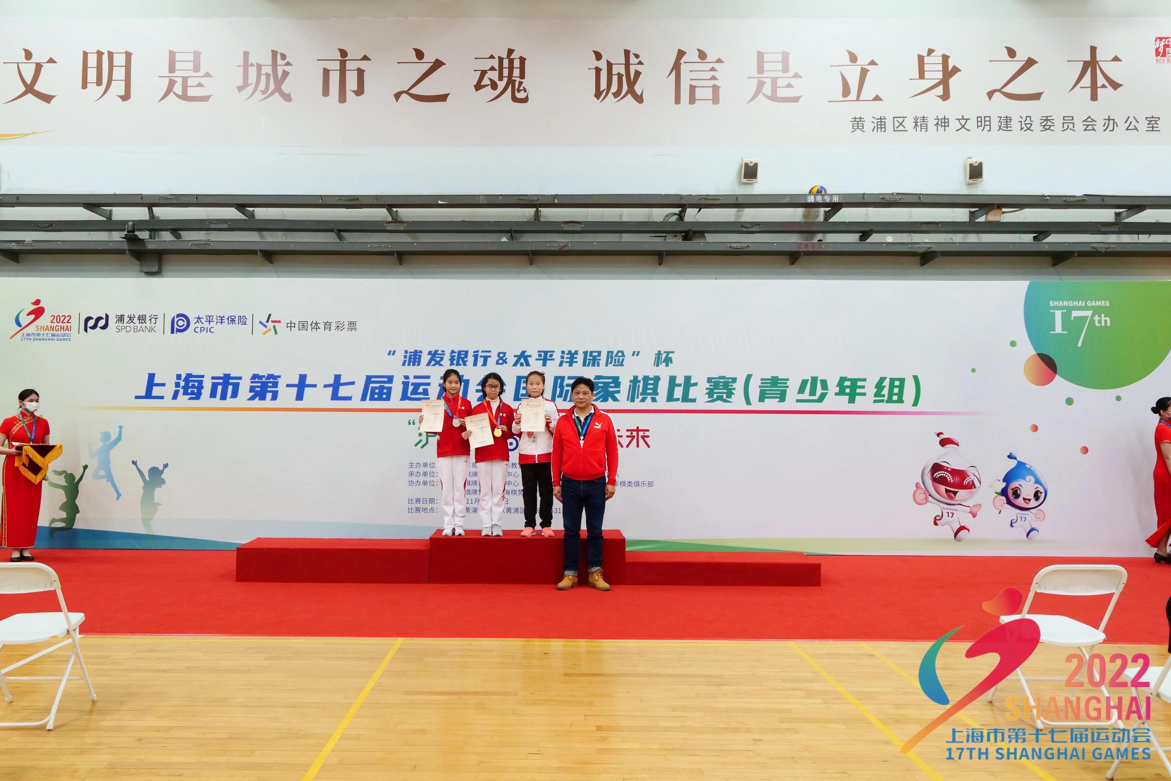 国际象棋作为首次入选市运会的正式项目,共设6块金牌。黄浦区代表团连续激战两日,最终获得女子A组、女子C组第一、女子C组第二、男子A组第三的优异成绩,2金、1银、1铜雄踞该项目奖牌榜榜首。