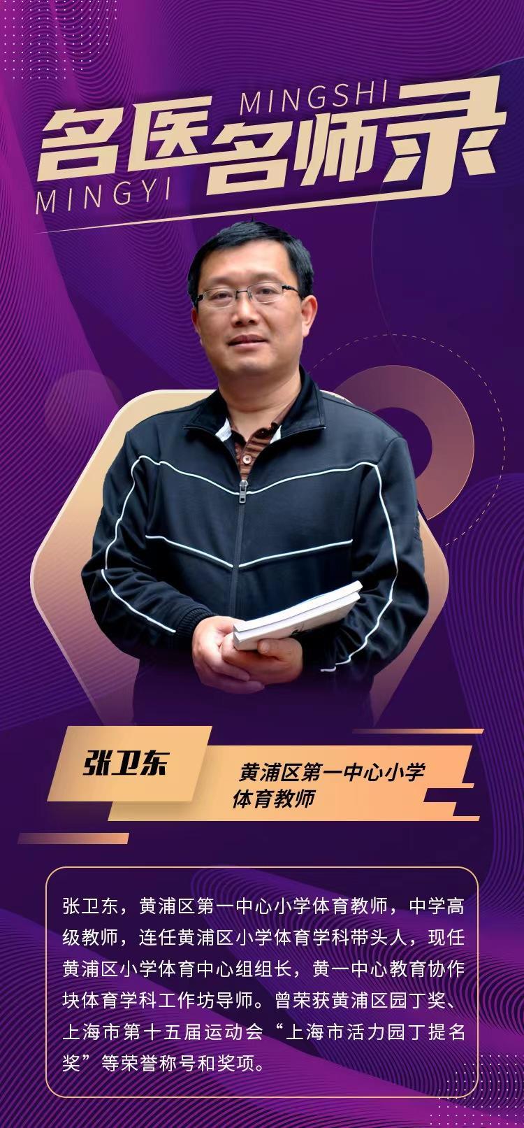 作为一名基层体育教师,张卫东凭借着对教育事业的执著,对体育事业的热爱,坚守在课堂中、驰骋在操场上。用爱去耕耘,用智去播种,用心去培育,为黄浦区小学体育教育添上了浓墨重彩的一笔。