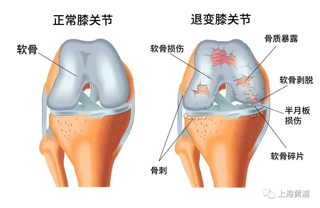特征是膝关节软骨退行性变,包括关节软骨的磨损和关节软骨的变性退化,以及骨质增生等引起的关节疼痛和关节功能障碍。