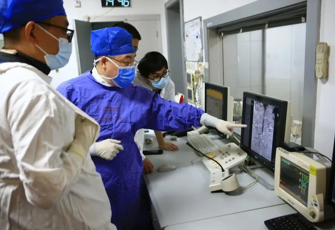 情况万分危急,吴主任马上向神经外科、神经内科、介入科发出紧急会诊请求,经过多学科会诊,决定由介入科负责抢救。介入科万军主任团队立即准备手术,造影发现基底动脉大动脉瘤破裂,施以弹簧圈栓塞,手术非常成功,术后没有留下任何并发症。