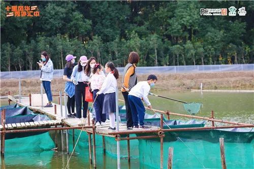 分会场的钓螃蟹比赛也进行的十分激烈。现场比赛都通过云直播转播到主会场的大屏幕上,没到现场的朋友通过云直播见证了这场庆丰收的盛事。分会场的沐秋市集,则汇集了咖啡、大闸蟹、云南腾冲特产以及各类浦江农优特产,以及文创产品。玲琅满目的市集,不仅吸引了活动现场的参与者,还吸引了周边村民前来围观。