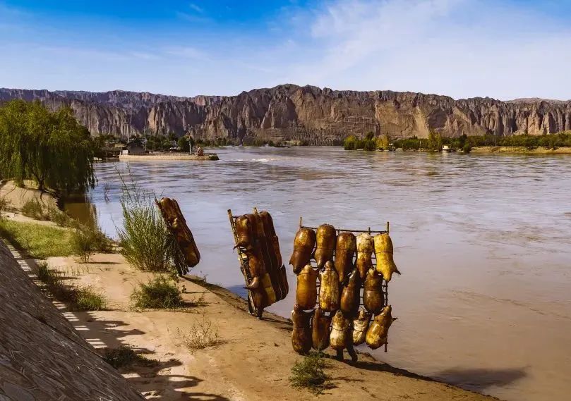 在黄河中上游地区,有一种特殊的羊皮筏,由十几个充满气的山羊皮并排捆扎在细木架上制成。《水经注》中就已有羊皮筏的记载,可见其历史久远。西北黄土高原,竹木稀少而羊皮易得,羊皮筏的发明有其文化基础。羊皮筏面积通常没有竹(木)筏大,但因其中空,排水量增加,因而具有较大的承载量。其原理与“腰舟”相同。所谓“腰舟”,就是干了的葫芦,密封,内空,重量小,系在腰间可以使人不沉,类似于今天的救生圈。羊皮筏是腰舟的“集合”,功能比腰舟大为增加,可供多人乘渡。