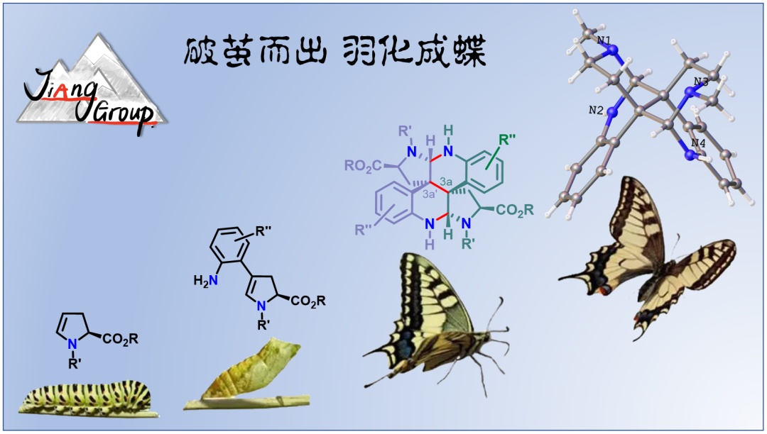 从平凡无奇还略显简陋的“蚕蛹”苯胺-烯胺二氮单体,到高张力、多手性、四级碳如“蝴蝶”一样美丽的四氮二聚体。