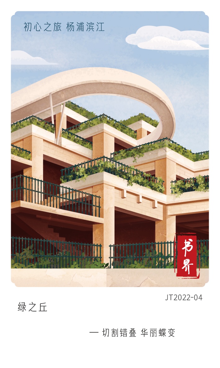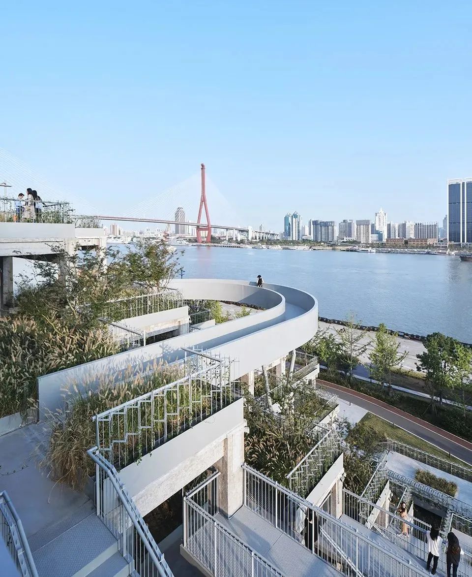 如今的绿之丘已然成为一座集基础设施、公共服务、公园绿地于一身,连通城市与江岸的综合体,成为杨浦新晋打卡地标。