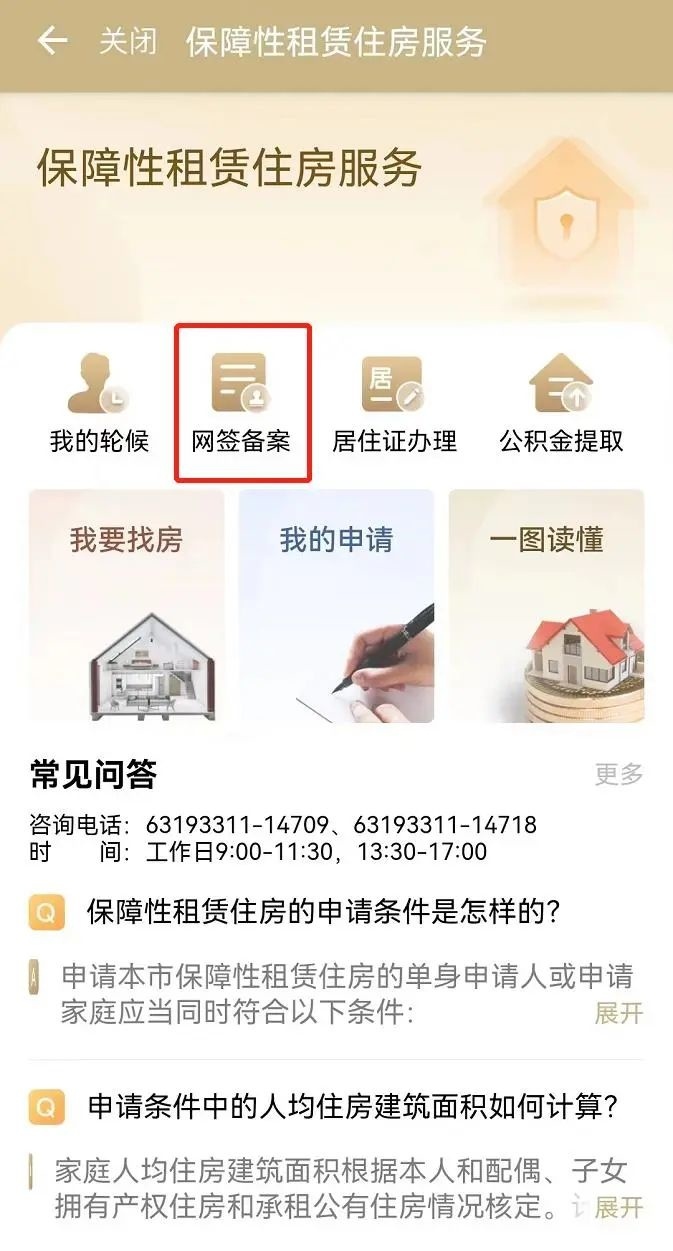 4、申请人通过资格审核并与租赁企业确认具体承租房源信息后,由租赁企业通过线上推送租赁合同,申请人可点击“网签备案”,进行租赁合同签订备案。