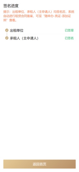 出租单位、承租人签名后,系统将自动进行租赁合同备案。