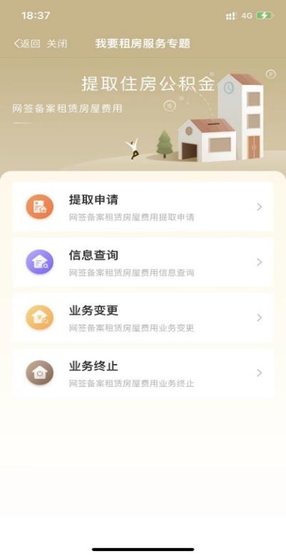 该服务提供提取申请、信息查询、业务变更、业务终止四项功能。