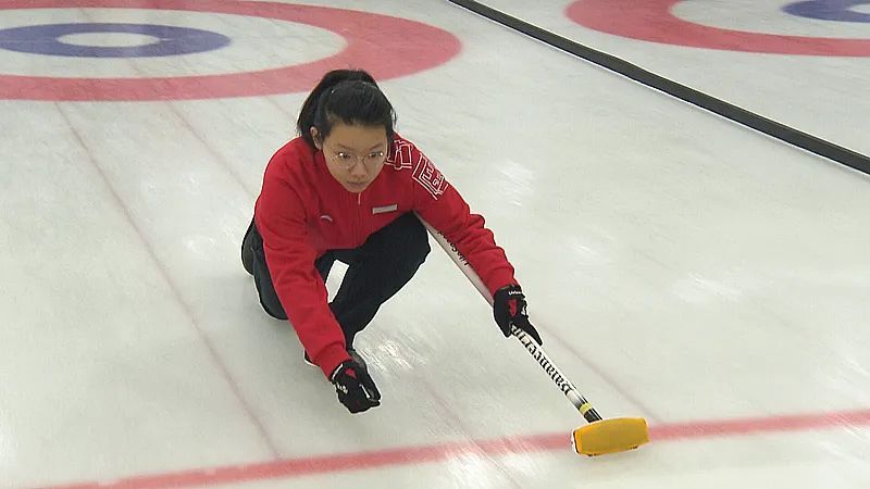 在冰壶训练场,闵行区冰壶队开展了赛后的首次训练。在训练前,他们先要进行热身运动。眼前这位领操员就是前不久在市运会冰壶比赛混合双人比赛中,勇夺银牌的闵行小囡——慕佳茵,16岁的她已有四年冰龄,今年6月刚从罗阳中学毕业。