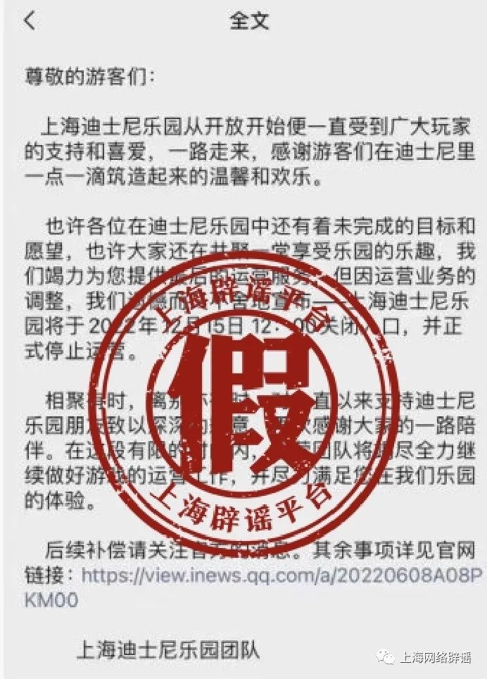 对此,上海迪士尼度假区今天通过官方微博账号明确,该截图为假消息。