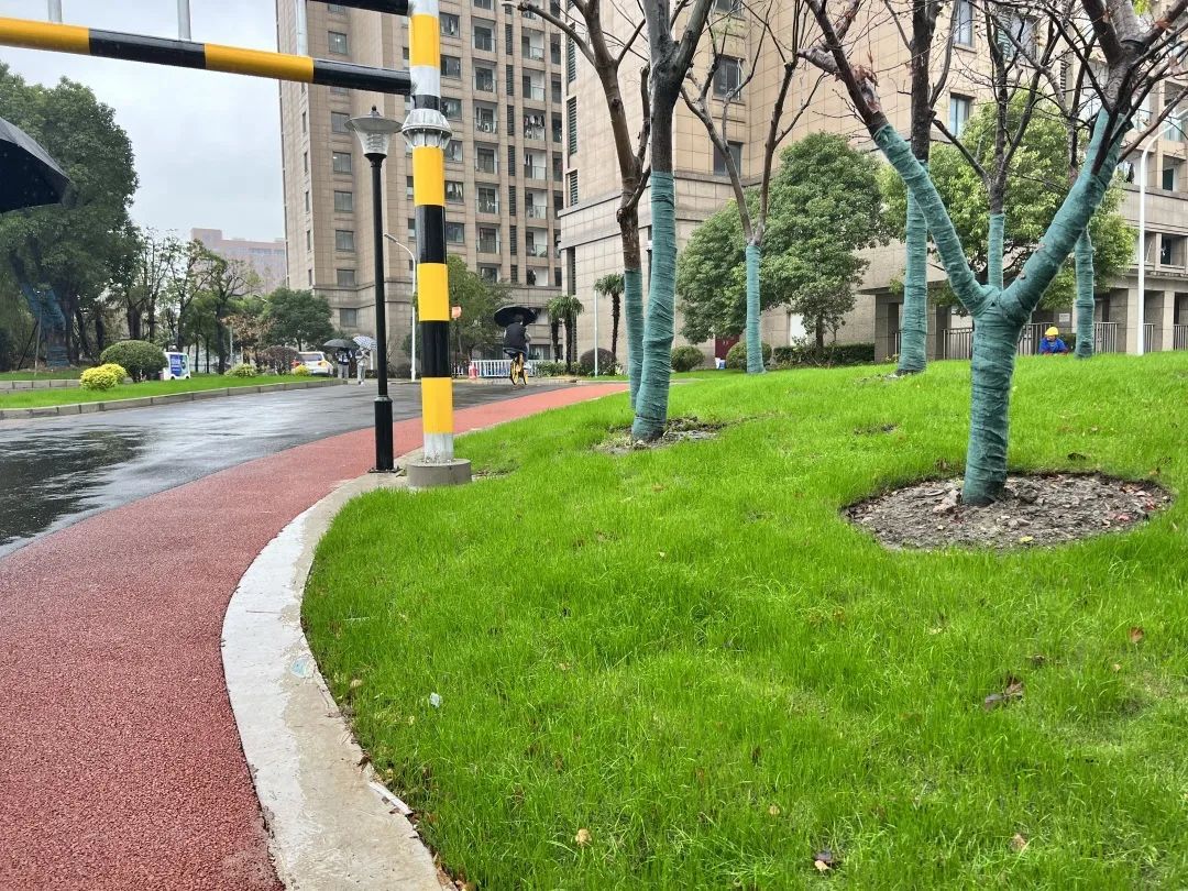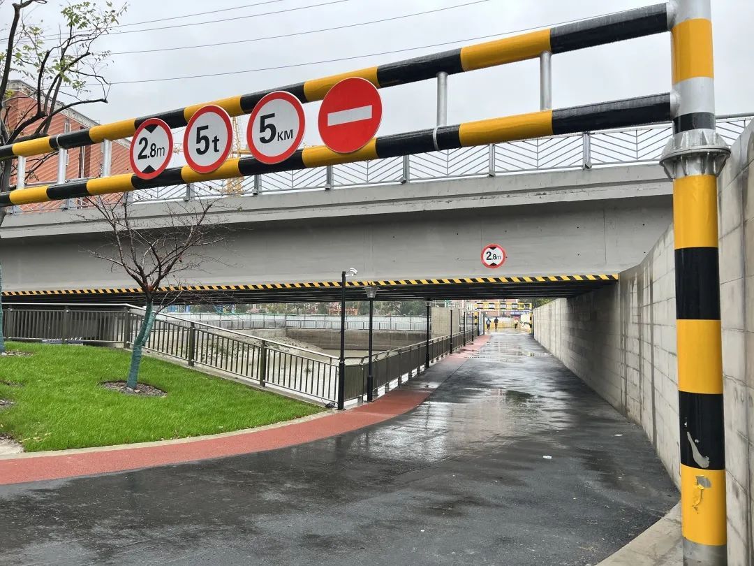 景观绿地生机勃勃,混凝土浇筑的防汛墙换上新装,从前的道路断点如今畅通无阻,人行通道和车行道区域划分明显,方便车辆和师生市民通行……项目完工后,改善了海安路复兴岛西岸环境品质,解决滨河公共空间的贯通并提升公共设施水平,同时利用滨河的空间通道保障上海理工大学南北校区通行安全。