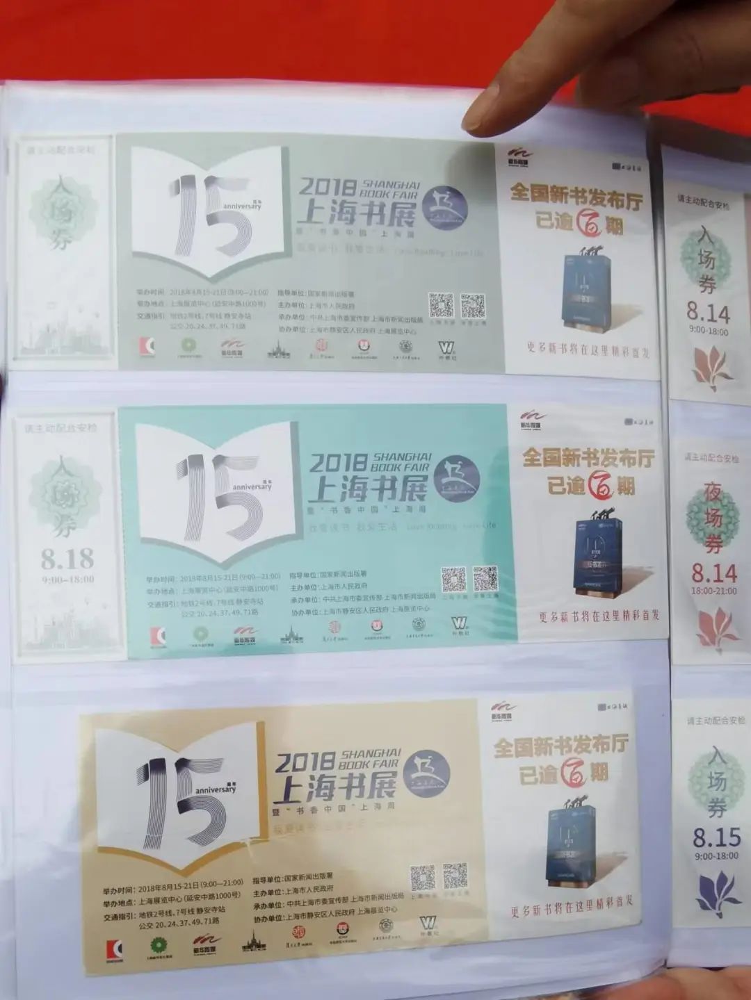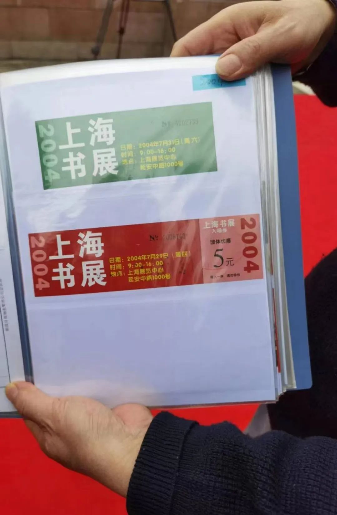 家住在长宁区的市民李涌金,是上海书展的一位忠实粉丝。他告诉记者,每一届的上海书展,他都如约而至,很有感情,今天他还带来了第一次书展到现在的全部书展门票。翻看从2004年首次上海书展到最近一届上海书展的门票,李先生难掩心中的激动。
