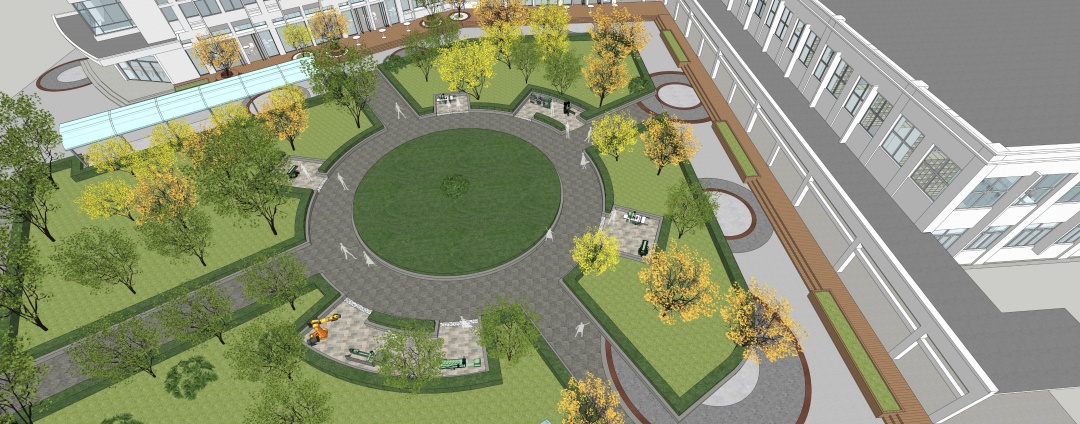 工程实践文化园入口正对D楼东门,位于HE、HC、HD三座楼围成的U形绿地中。五块空地犹如众星拱月般分布开来。这里将安置曾经为上海大学金工实习立下汗马功劳的车床、刨床、磨床、铣床、数控车床等老机床。安放在开放的花园中,既打破教室边界,又延伸了教学场地。