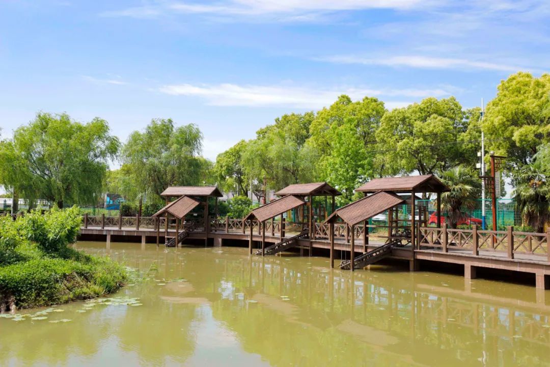 白墙黛瓦、水流潺潺,蔡家楼埭前的道路平整开阔,家家户户建了小菜园、小花园、小果园,一眼望过去俨然一座小型公园。蔡家楼河道中段,清清的河水绕着古色古香的朱氏船舫流过,这是沪上有名的清代古船舫遗址,也是上海市首个经正式发掘、与水下文化遗产密切相关的半淹没遗址。