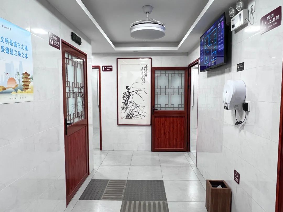 百安集市公厕按照上海市一类公厕标准建造,智能化管理系统不仅方便市民查看厕位使用情况,也让管理人员实时掌握公厕人流量,及时进行清洁打扫。