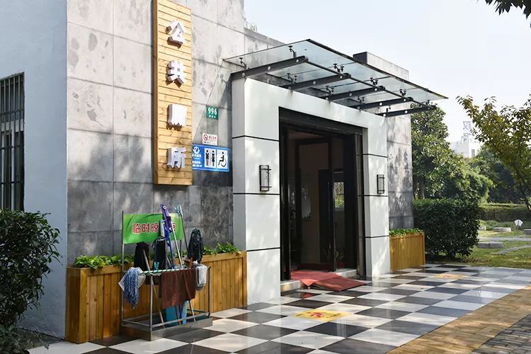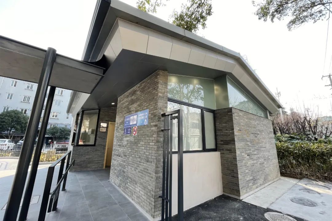 该公厕毗邻徐行公交枢纽,周边又有多个居民小区,日常人流量不少,尤其以老年人居多,为此公厕专门设置第三厕间供老年人及残障人士使用。此外,公厕还将管理房打造成爱心驿站,提供便民医疗、应急充电、热水等多项服务。