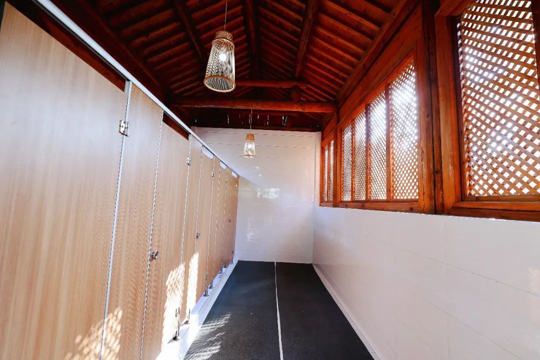 公厕多处使用带有中式韵味的镂空花格窗,晴天采光通透,阴雨天则能保持空气通畅。