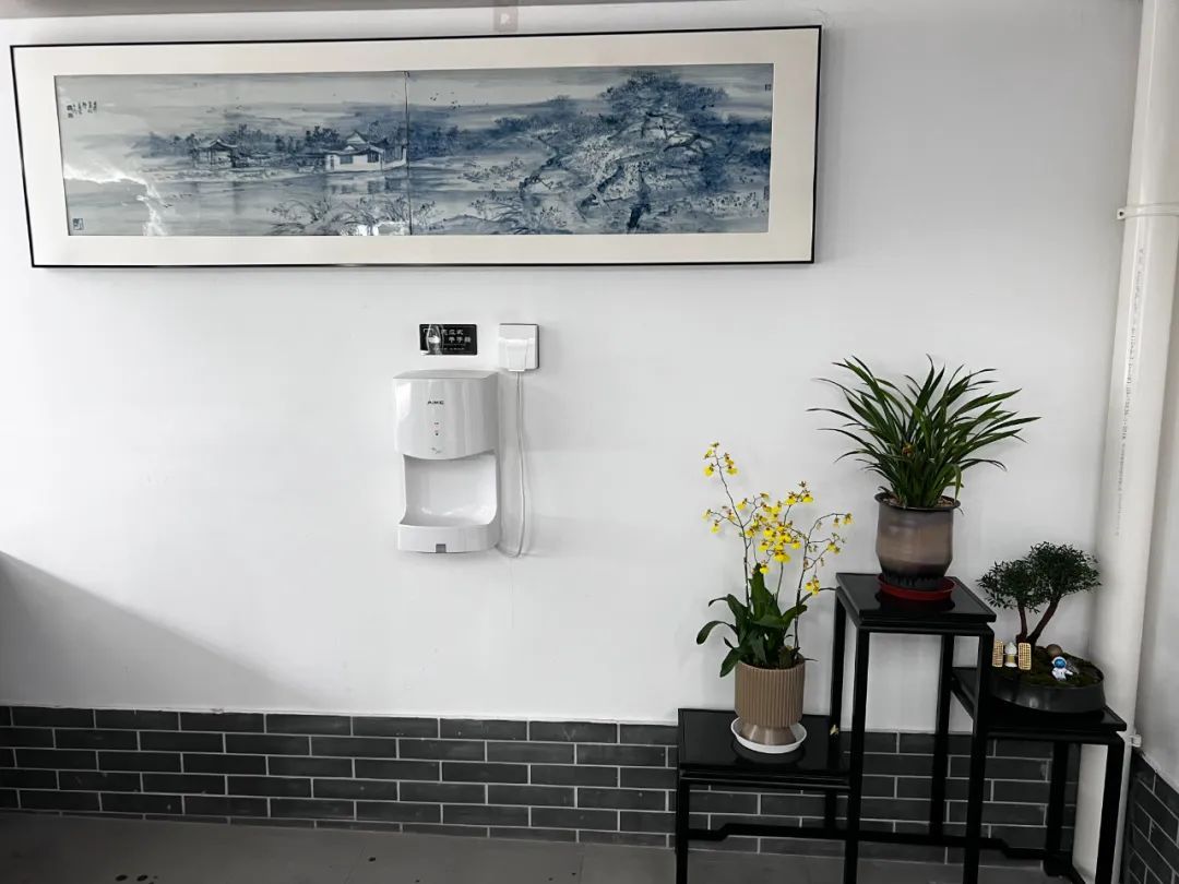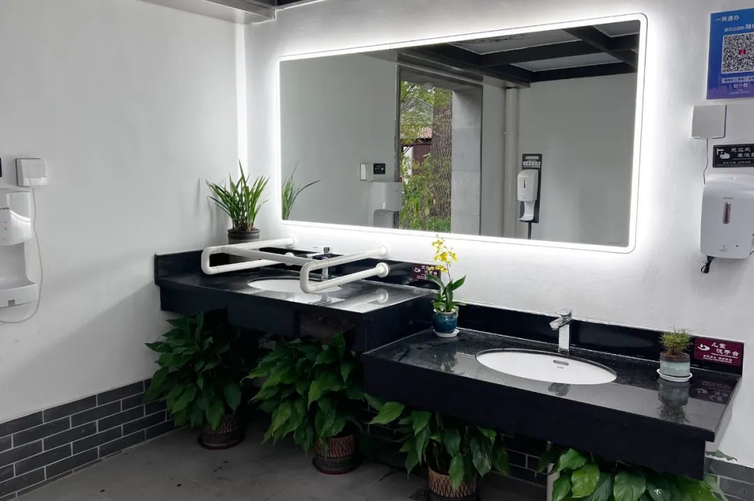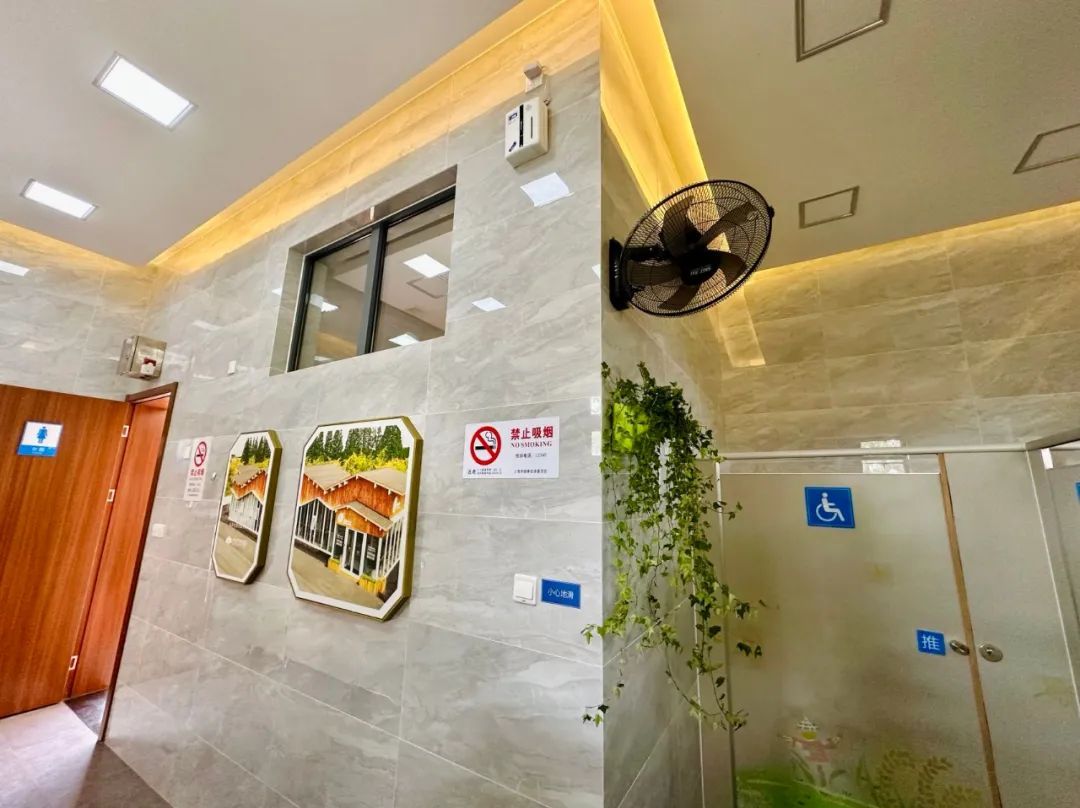 公厕设有智能除臭香薰器,每隔半小时喷一次精油香氛,保持空气清新。