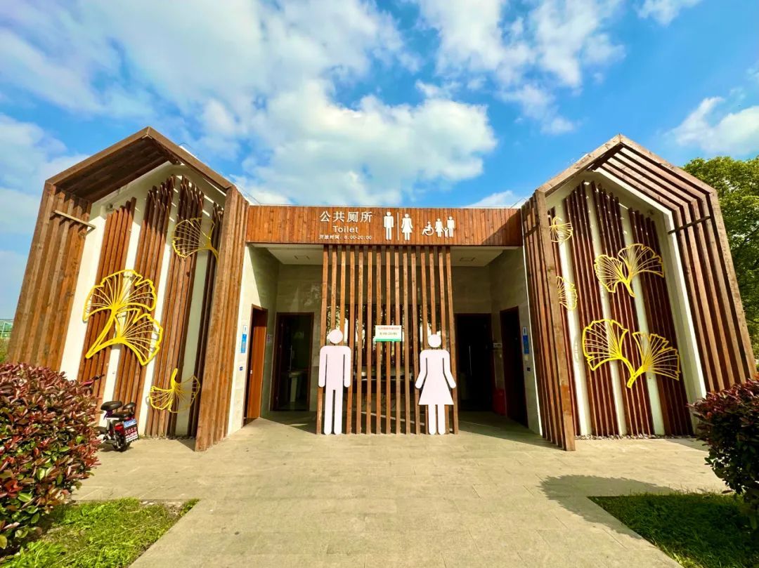 位于安亭镇向阳村展阳路的公厕同样入选2022年上海“最美厕所”。外观上,公厕采用“后现代”设计风格,以安亭名片“银杏”为主题,外立面的黄色木栅格处镶有金黄色的银杏叶片,图案美丽简洁。