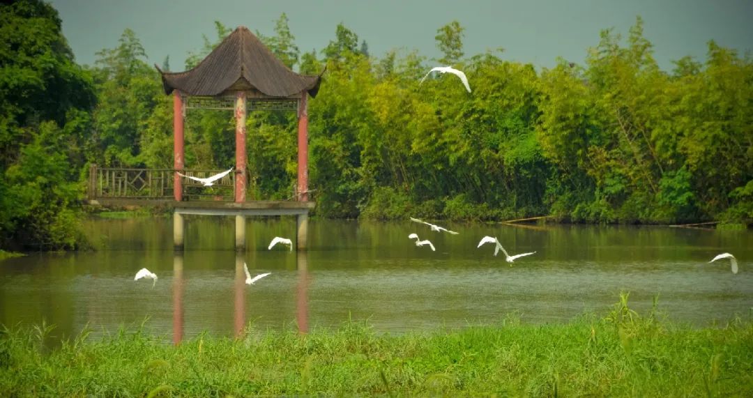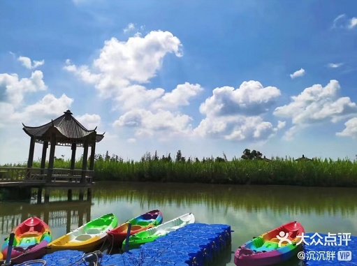 湿地公园位于水库村中心河东段南侧,分为芦苇荡迷宫、鸟类筑巢的杉林迷宫、涉禽觅食及繁殖的寻鸟秘影迷宫以及游客赏花探果迷宫4个区块,游客可乘游船、步行或骑行享受湿地公园的休闲和野趣。